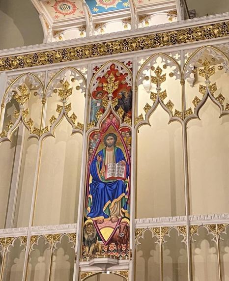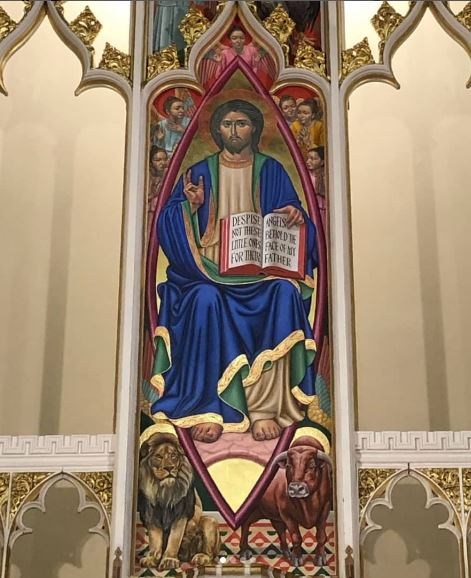 On the feast of the Immaculate Conception Cardinal Vincent Nichols will bless the first installed panel of the rerdos screen during the mass for the Dedication of the altar, RC Church of Guardian Angels 377 Mile End Road, London E3 4QS