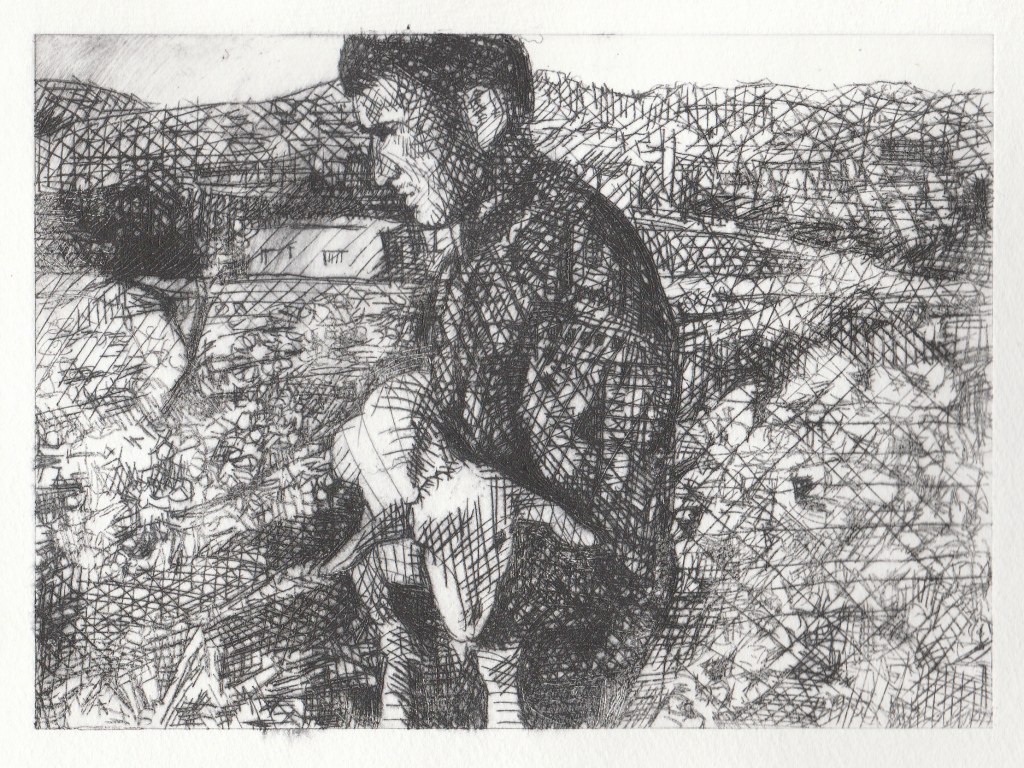‘The Good Shepherd’ Original Drypoint Etching print in an edition of 25, plain or with mixed media colour. Print size 7″x 5″, mounted size 12″x 10″. Available for purchase; free postage to UK http://pay.sumup.com/b2c/XF7NXL7R or visit https://www.etsy.com/uk/listing/4329933360/the-good-shepherd-original-drypoint